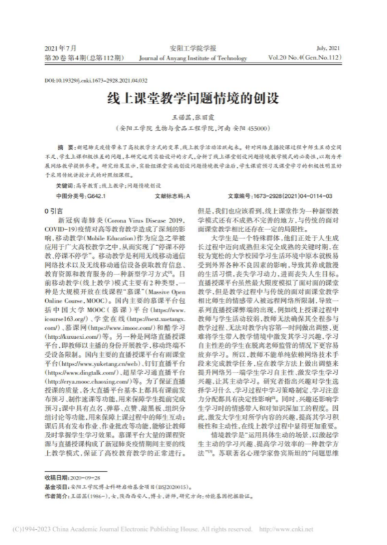 7.线上课堂教学问题情境的创设,安阳工学院学报