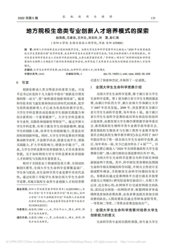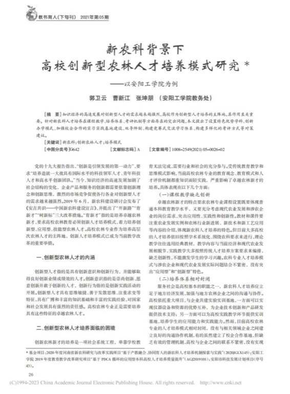 9.新农科背景下高校创新型农林人才培养模式研究——以安阳工学院为例,教书育人(高教论坛)