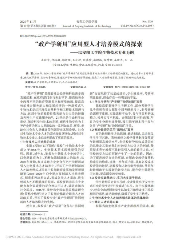 4.“政产学研用”应用型人才培养模式的探索--以安阳工学院生物技术专业为例,安阳工学院学报